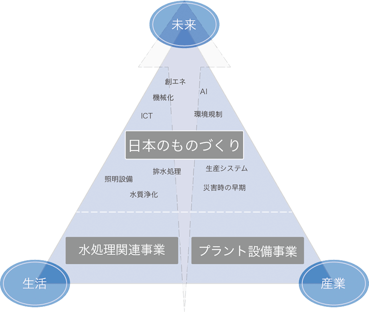 水処理や発電プラントなどの分野で、企画・設計・施工・保守まで一貫したマネジメントとチームワークを活かし、信頼される電気工事の専門企業として社会に貢献しています。